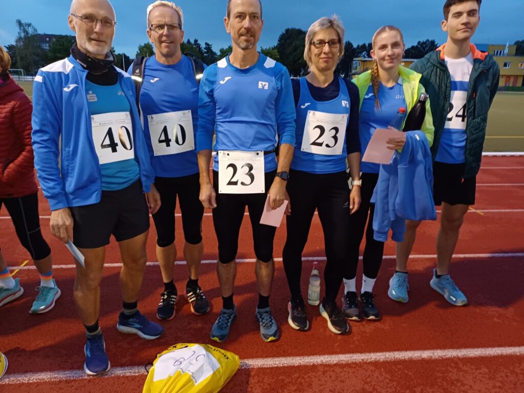 … wird gelaufen, was sonst. Einige Athleten vom LSV Pirna trafen sich Freitagabend (26.09.25) zum Heidenauer Paarlauf. In einer spannenden Stunde wechselten sich die Läufer ab: Einer musste immer auf der Bahn sein, der andere gönnte sich eine kurze Verschnaufpause. Im Ziel waren alle Pirnaer zufrieden mit ihrem Freitagabend, einige fanden sich sogar zur Siegerehrung mit Pokal, Urkunden und kleinem Präsent ein: