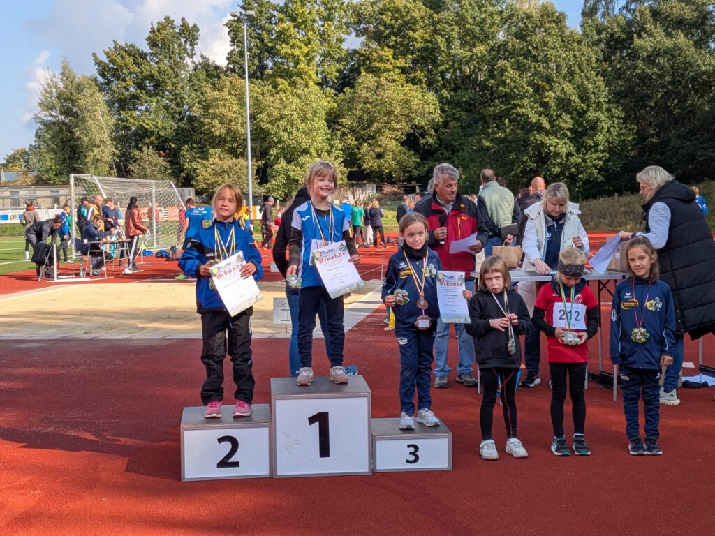 Eine sportliche Einladung erreichte uns für den 3. Oktober 2025 zum Stadtsportfest in die schöne Pfefferkuchenstadt Pulsnitz. Traditionell beenden wir hier unsere Freiluftwettkampfsaison in den verschiedenen Leichtathletikdisziplinen. In diesem Jahr wollten sich 26 Athleten aus den Trainingsgruppen U8 – U14 sowie auch die Trainer Lara Leuschke, Daniel Bandt und Leon Bandt aus unserem Verein in den Einzeldisziplinen Sprint, Hürdensprint, Wurf, Stoß, Weitsprung und dem 800m Lauf miteinander messen. Das Teilnehmerfeld und somit die Konkurrenz zeigte sich sowohl in Zahlen als auch in ihren Leistungen enorm groß. Aus 32 Vereinen traten 263 Sportler an, um für sich im Einzelnen eine tolle sportliche Leistung zu erreichen und auch um die heißbegehrten Podestplätze sowie Medaillen zu werfen, sprinten, springen, rennen oder zu stoßen. Unser Endergebnis kann sich sehr gut sehen lassen. Mit großer Freude nahmen unsere Sportler Medaillen, Urkunden (Platz 1-3) auf dem Podest sowie die ersehnten Pfefferkuchen ( Platz 1-6) dankend entgegen.